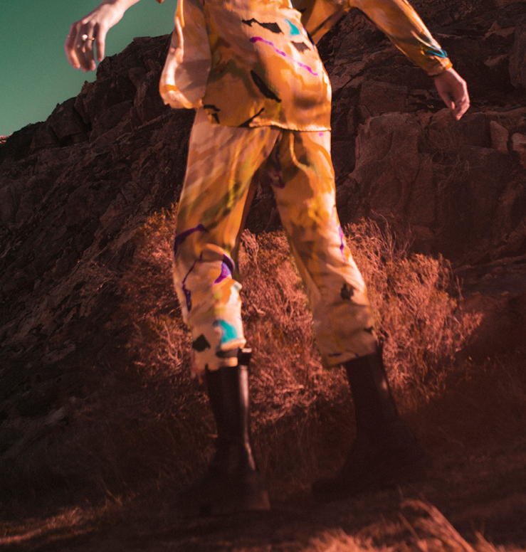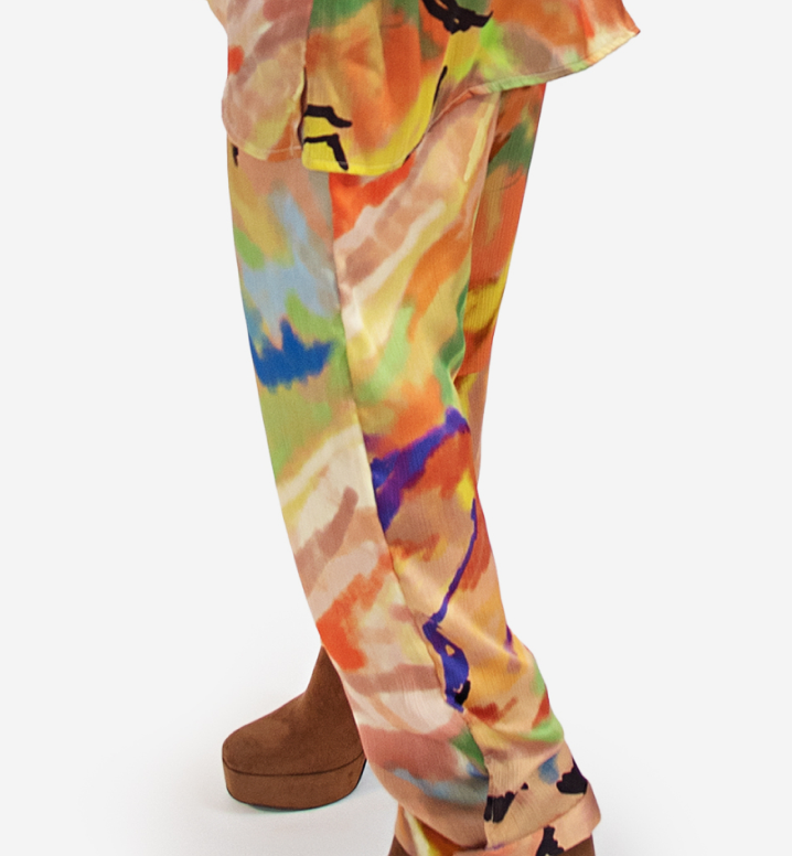 Butterfly abstract print capri pants | Slit opening on pant leg | Button closure on pant cuff | Pairs with Abstract Butterfly Quincy top | 100% rayon
